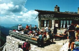 Eccola, la cima per eccellenza da dove si può osservare la parte più elevata del Gruppo del Latemàr e rendersi conto dell’esatta inclinazione del pendio meridionale del grande Cimón del Latemàr. Cima del Forcellone è l’alta e possente montagna che chiude a nord-ovest i Lastèi di Valsorda, situata a nord del Forcellone (sella tra la Cima Paión) e che rivolge a nord, alla Torre della Miniera, una cresta impervia. Non meno austera è la sua parete occidentale e in ogni modo tutto il corpo della montagna possiede dimensioni e caratteristiche di riguardo, anche se il versante orientale, quello rivolto ai Lastèi di Valsorda, non spaventa nessuno. È, infatti, da sud-est che sale la via normale per la cima. Un itinerario adatto ad ogni escursionista capace di scarpinare anche fuori sentiero. Quassù ci sono soltanto tracce di passaggio. Bella anche la cresta sud-ovest, ossia il percorso (non segnato) che inizia direttamente dal Forcellone e porta a scoprire pareti e canali che rimarcano l’imponenza del versante ovest e l’austerità della parete sud. Per il versante orientale. Dal sentiero 516, prima di raggiungere la Forcella dei Campanili (ore 1,30 dal Rifugio Torre di Pisa), per varie tracce del versante est che portano sulla cresta o direttamente in cima. Più interessante e spettacolare, percorrere la cresta sud-ovest partendo dal Forcellone (sella a quota 2582 m.). Si sale per pendii erbosi, roccette, canale roccioso e ripidi pendii, con alcuni passaggi di I°. Discesa per il versante est, dove maggiori sono le tracce di passaggio. In macchina fino a Stava e Pampeàgo dove troveremo ad attenderci l'amico Mario Corradini. Qui, per strada (chiusa al traffico) e sentiero 504 e 516, al rifugio Torre di Pisa m. 2671, in ore 2,20 circa (già una meta per i meno allenati). Si prosegue con il sentiero 516 fino prima di raggiungere la Forcella dei Campanili, dove, per tracce (leggi sopra) si sale in vetta; dal rifugio ore 2,15 circa. (discesa per lo stesso sentiero).